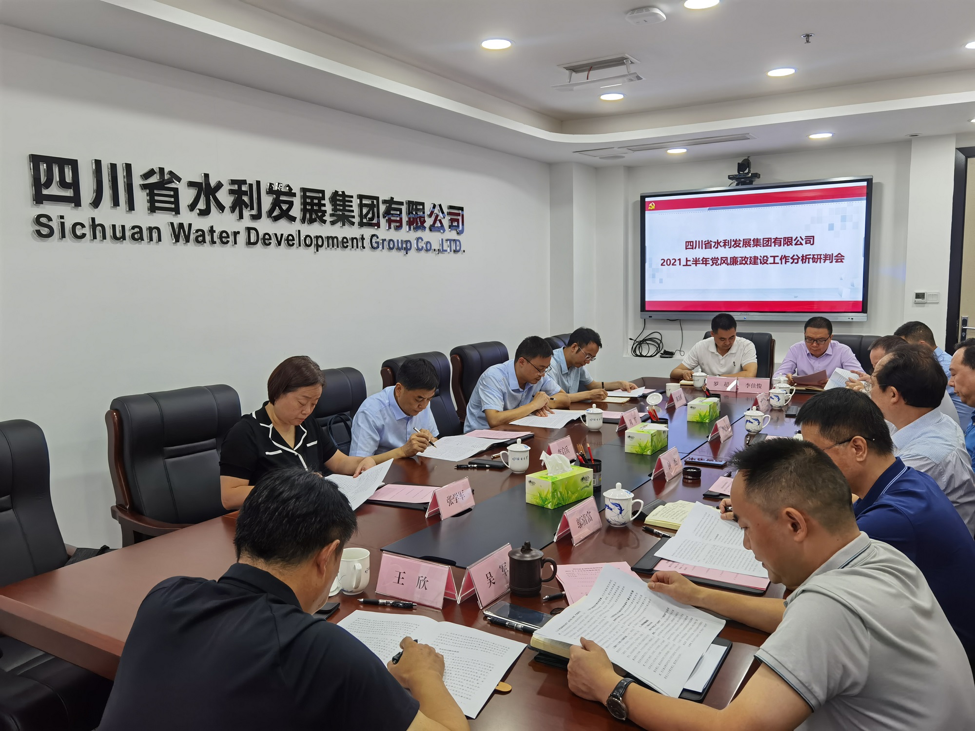 2021年7月15日上午,省紀委監(jiān)委駐水利廳紀檢監(jiān)察組組長、廳黨組成員李啟兵一行4人蒞臨集團,專題聽取集團黨委上半年黨風廉潔建設工作分析研判報告,指導集團黨風廉潔建設工作。集團黨委書記、董事長鐘杰以及集團黨委班子成員、集團紀委委員、辦公室主任、紀檢監(jiān)察部全體人員參加會議。