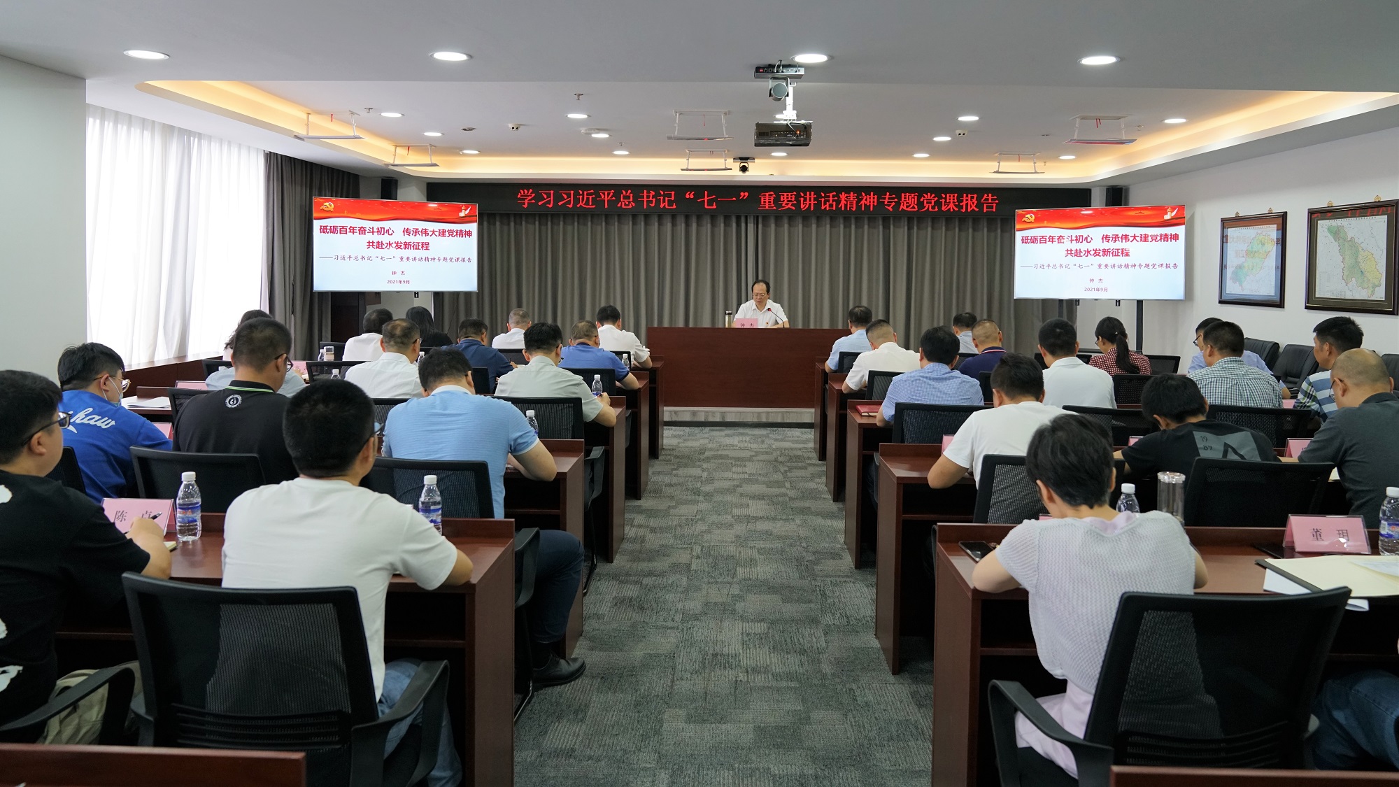 按照省水發(fā)集團(tuán)黨史學(xué)習(xí)教育統(tǒng)一安排,9月13日,集團(tuán)黨委書記、董事長(zhǎng)鐘杰以《砥礪百年奮斗初心,傳承偉大建黨精神,共赴水發(fā)新征程》為題,就深入學(xué)習(xí)貫徹習(xí)近平總書記“七一”重要講話精神為集團(tuán)總部職工講授了專題黨課。集團(tuán)總部全體職工參加此次會(huì)議。
