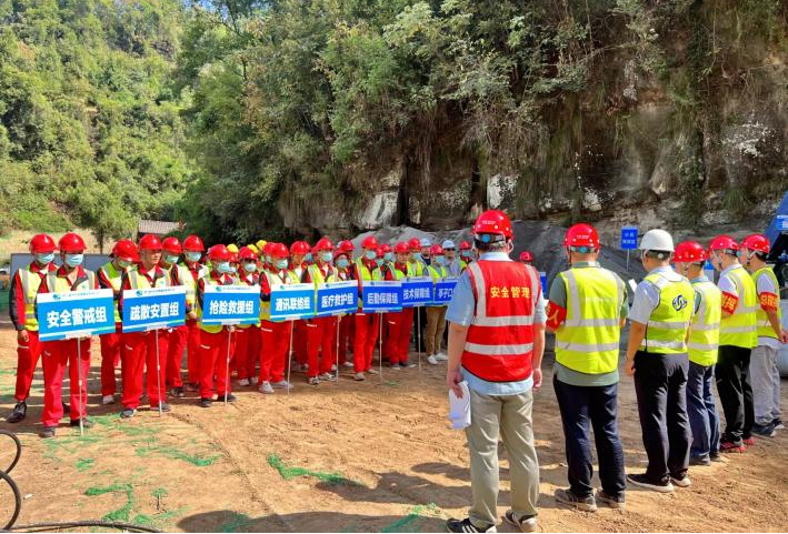 2022年極端氣候頻發(fā),極易突發(fā)自然災害。8月22日,為有效應對超標準洪水及地災突發(fā)事件,切實提高防汛搶險及應對地質(zhì)災害的應急綜合指揮能力,檢驗總承包項目所屬搶險救援隊伍的協(xié)同作戰(zhàn)能力,亭子口灌區(qū)一期工程EPC第Ⅰ標項目部在二郎山2#施工支洞作業(yè)面組織開展了2022年度防洪度汛暨防地災應急演練。