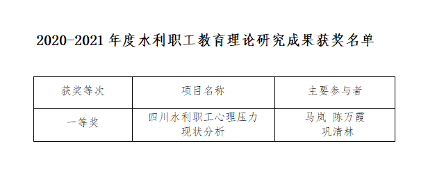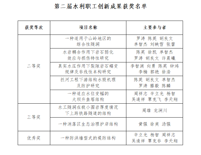 10月26日,中國水利教育協(xié)會在官網(wǎng)發(fā)布了第二屆水利職工創(chuàng)新成果評選結(jié)果和2020-2021年度全國水利職工教育理論研究成果評選結(jié)果的公告,集團(tuán)多名職工在評選中獲獎。