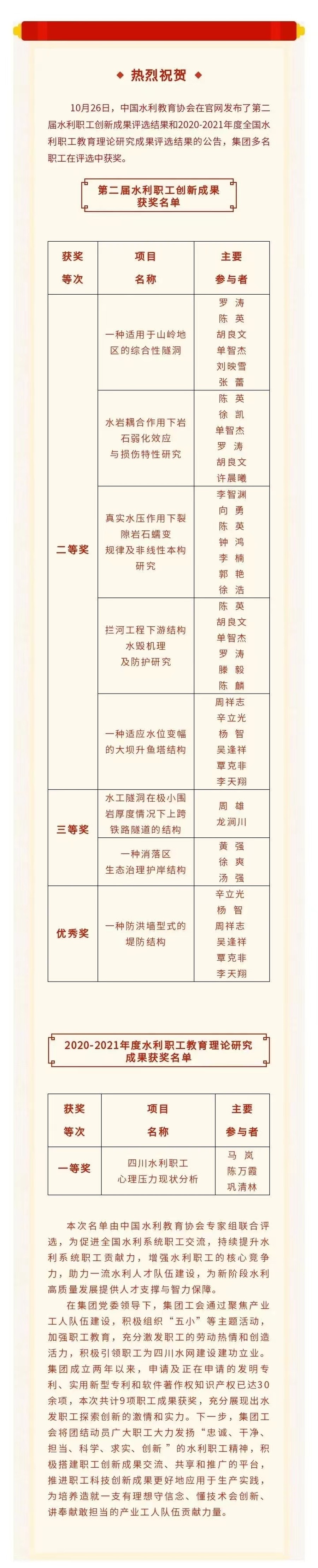 喜報(bào)!集團(tuán)在第二屆水利職工創(chuàng)新成果獲獎名單和2020-2021年度水利職工教育理論研究成果獲獎名單出爐