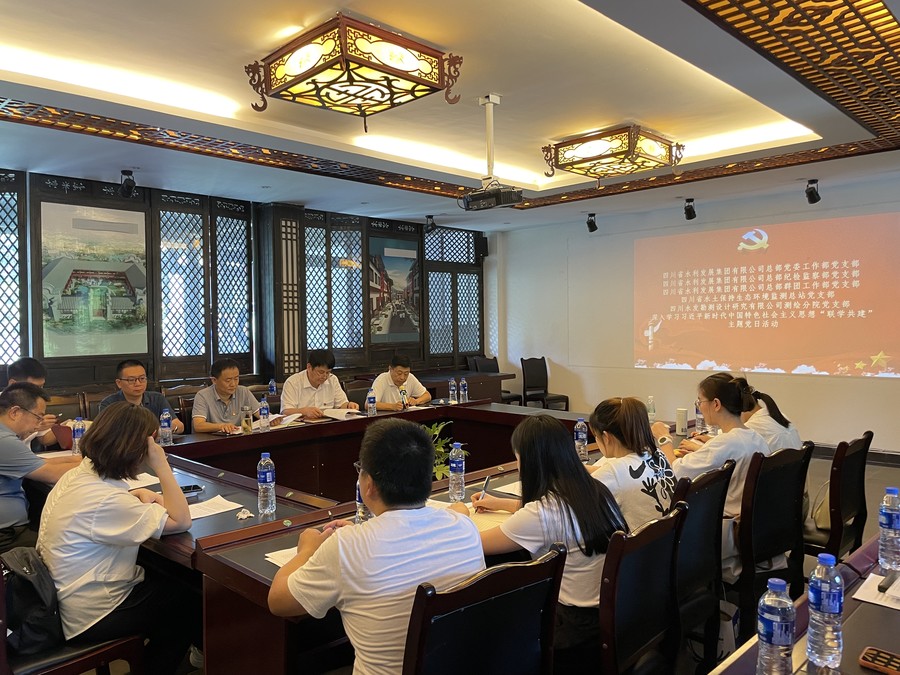 為深入學(xué)習(xí)貫徹習(xí)近平新時(shí)代中國特色社會(huì)主義思想主題教育要求,抓實(shí)抓細(xì)“我為群眾辦實(shí)事”實(shí)踐活動(dòng),鞏固“兩去兩服務(wù)”作風(fēng)整頓成果,進(jìn)一步增強(qiáng)集團(tuán)各基層黨支部圍繞主責(zé)主業(yè),服務(wù)基層一線意識(shí),不斷提升總部各部門與下屬企業(yè)、與外部友好單位之間溝通協(xié)作效率。7月21日,集團(tuán)總部紀(jì)檢監(jiān)察部黨支部聯(lián)合設(shè)計(jì)公司測(cè)繪分院黨支部開展了以“學(xué)思想、強(qiáng)黨性、重實(shí)踐、建新功”為主題的聯(lián)學(xué)共建主題黨日活動(dòng)。集團(tuán)黨委工作部黨支部、群團(tuán)工作部黨支部、四川省水??傉军h支部特邀參加。