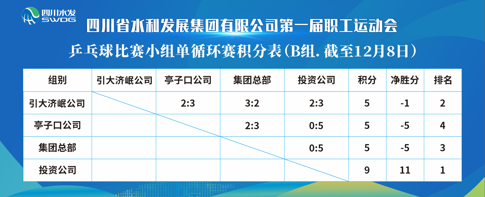 自12月5日運(yùn)動(dòng)會(huì)開(kāi)賽至今,水發(fā)集團(tuán)首屆職工運(yùn)動(dòng)會(huì)第一階段的小組循環(huán)賽已全部結(jié)束。積分榜上,8支隊(duì)伍積分你追我趕。最終進(jìn)入決賽的隊(duì)伍分別是籃球(投資公司 VS 設(shè)計(jì)公司),乒乓球(投資公司 VS 設(shè)計(jì)公司),足球(集團(tuán)總部 VS 投資公司),羽毛球(投資公司 VS 設(shè)計(jì)公司)。