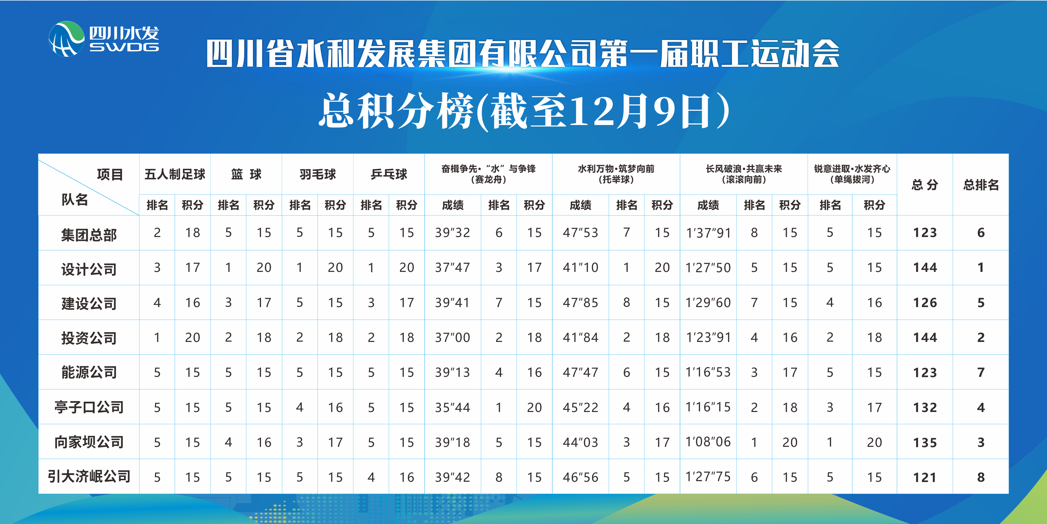 本屆職工運(yùn)動(dòng)會(huì)是水發(fā)集團(tuán)成立以來(lái)舉辦的第一次大型體育活動(dòng),12月5日-8日,已進(jìn)行了籃球、五人制足球、乒乓球、羽毛球,共60場(chǎng)循環(huán)賽和排位賽。這既是全體水發(fā)人的盛大節(jié)日,也是檢驗(yàn)集團(tuán)企業(yè)文化建設(shè)成果的一次盛典,更是展示水發(fā)人良好精神風(fēng)貌的一個(gè)契機(jī)。水發(fā)集團(tuán)現(xiàn)已構(gòu)建成了投建運(yùn)管一體化組織體系,并實(shí)現(xiàn)高效運(yùn)行。時(shí)到歲末年終,在工作最忙碌的階段,希望通過(guò)本次運(yùn)動(dòng)會(huì)進(jìn)一步激發(fā)干部職工干事創(chuàng)業(yè)的精氣神,提升攻堅(jiān)克難的戰(zhàn)斗力,為圓滿實(shí)現(xiàn)集團(tuán)年度各項(xiàng)目標(biāo)任務(wù)拼搏實(shí)干貢獻(xiàn)力量。