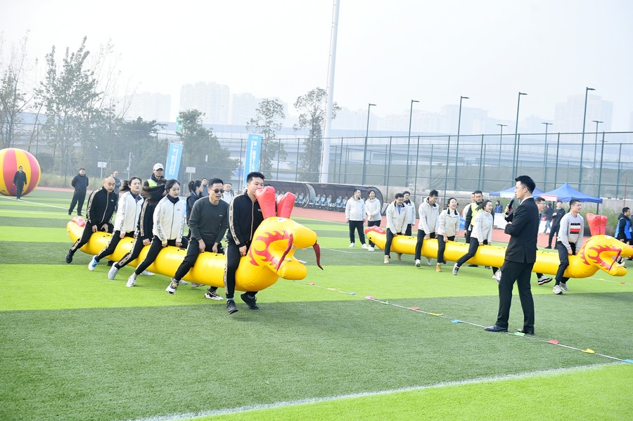 在趣味比賽中,水利萬(wàn)物·筑夢(mèng)向前(托舉球)項(xiàng)目各個(gè)參賽隊(duì)齊心協(xié)力,一起托舉起巨大球體穩(wěn)步前行,克服各種不確定性阻力最終到達(dá)終點(diǎn),迎來(lái)陣陣掌聲;在銳意進(jìn)取·水發(fā)齊心(單繩拔河)項(xiàng)目比賽現(xiàn)場(chǎng),抓牢賽繩,勒繩下腰,降低重心,齊心協(xié)力往后“拔”,歡呼聲、加油聲此起彼伏;奮楫爭(zhēng)先·“水”與爭(zhēng)鋒(賽龍舟)、長(zhǎng)風(fēng)破浪·共贏未來(lái)(滾滾向前)趣味比賽項(xiàng)目,盡顯“活力水發(fā)·運(yùn)動(dòng)水發(fā)”的健康形象。