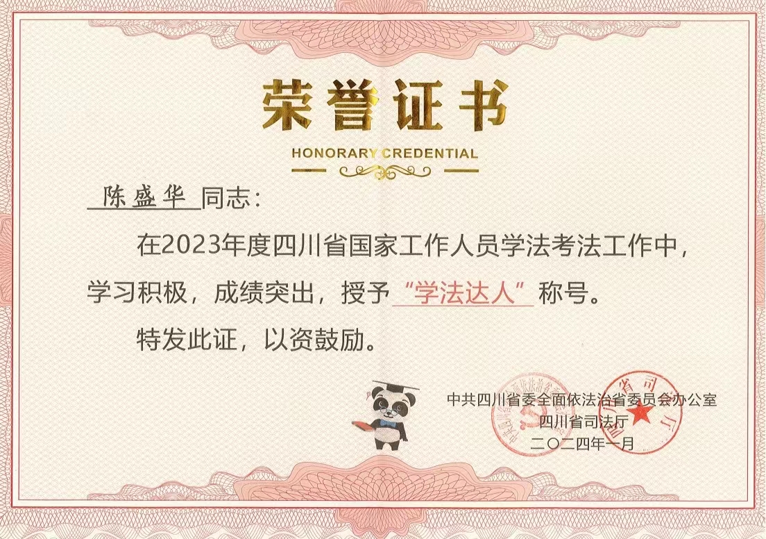 近日,中共四川省委全面依法治省委員會(huì)辦公室、四川省司法廳通報(bào)2023年度四川省國家工作人員學(xué)法考法工作情況,全省114.8萬人參考,評出學(xué)法超過1000分且年度考法成績滿分的“學(xué)法達(dá)人”共1143名,其中建設(shè)公司陳盛華同志以位列全省企業(yè)類第3名的成績喜獲殊榮。