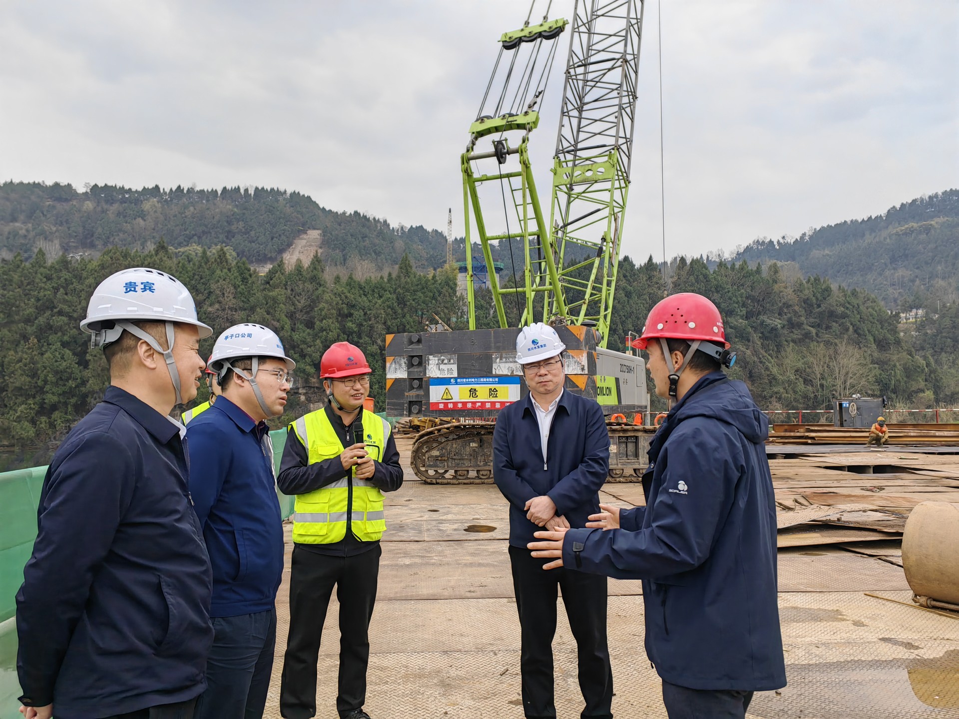 楊志文一行深入建設(shè)公司承建的觀音寺渡槽施工現(xiàn)場,實(shí)地參觀了數(shù)字化鋼筋綜合加工廠、中心實(shí)驗(yàn)室、空心墩墩身、鋼棧橋等位置,同時聽取項(xiàng)目管理人員對亭子口灌區(qū)一期工程I標(biāo)段工程概況、關(guān)鍵性工程觀音寺渡槽概況的匯報,詳細(xì)了解了項(xiàng)目的建設(shè)進(jìn)展、數(shù)字化運(yùn)用、質(zhì)量管理、配套設(shè)施等實(shí)際情況,并就項(xiàng)目的規(guī)劃設(shè)計、施工方法、建設(shè)意義等方面進(jìn)行了探討交流。隨后,楊志文一行到亭子口灌區(qū)一期工程EPC第I標(biāo)總承包項(xiàng)目部開展調(diào)研座談會。