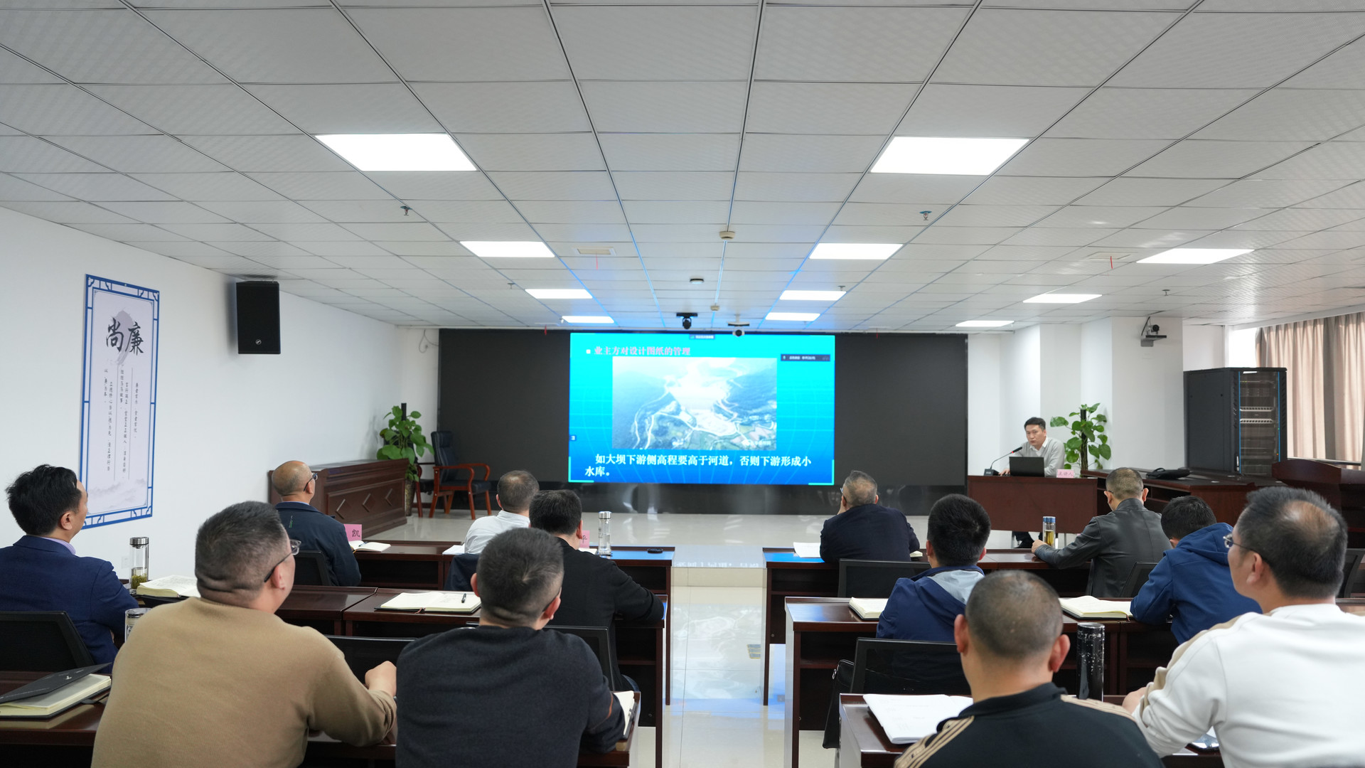 首堂課上,公司建設管理部部部長、水利工程管理高級工程師薛宇航,通過PPT圖文、典型案例分析的形式,詳細介紹了亭子口灌區(qū)工程EPC總承包模式項目法人建設管理工作要點,主要內容涵蓋程序管理、進度及計劃管理、計量計價管理、設計及施工方案管理等四個方面。