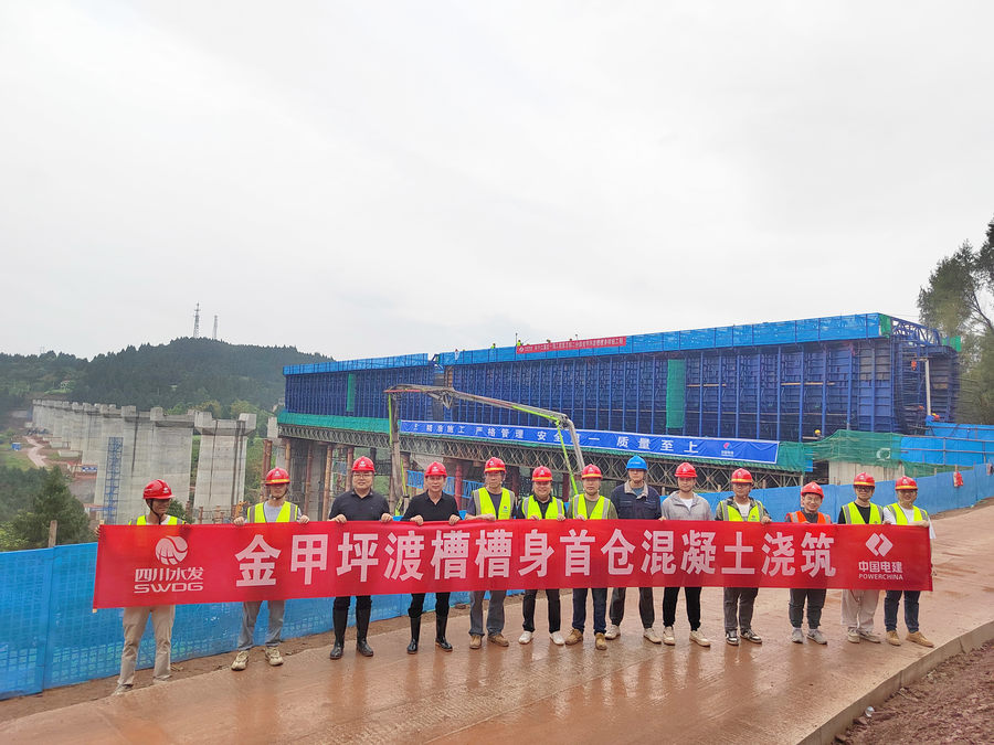 4月17日,亭子口灌區(qū)一期工程金甲坪渡槽首跨槽身完成澆筑。金甲坪渡槽是該標(biāo)段第4座高大渡槽,位于總干渠第8流量段,其設(shè)計(jì)流量為51.25立方米/每秒,槽身設(shè)計(jì)為預(yù)應(yīng)力梁式槽跨結(jié)構(gòu),槽身寬6.4米,深5.57米,跨徑布置為15跨42米,全長(zhǎng)630米,是安全質(zhì)量管控的重點(diǎn)部位,在大跨度現(xiàn)澆支架施工過程中,承臺(tái)及支架基底開挖易破壞周邊地質(zhì)穩(wěn)定狀態(tài),其第15跨槽身橫穿244國(guó)道,槽下凈空小、行車流量大、干擾因素多。