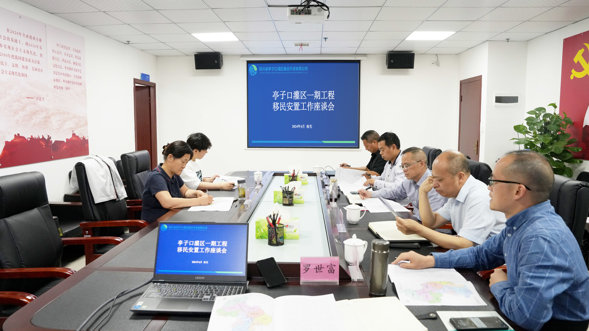 4月16日,水利廳移民安置處二級調(diào)研員劉莉一行到南充調(diào)研亭子口灌區(qū)一期工程移民安置工作并召開座談會。亭子口公司黨委書記、董事長廖建強(qiáng)出席會議,黨委委員、副總經(jīng)理路長青主持會議。