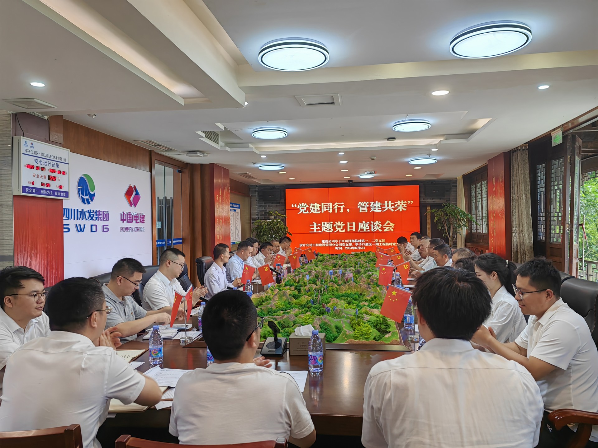 為深入學(xué)習(xí)貫徹習(xí)近平新時代中國特色社會主義思想,加強(qiáng)在業(yè)務(wù)和技術(shù)上的交流互動,以黨建聯(lián)動凝聚各方力量,6月5日,建設(shè)公司亭子口項目臨時第一、二黨支部與設(shè)計公司工程管理分公司黨支部、亭子口項目臨時黨支部聯(lián)合開展“黨建共行,管建共榮”主題黨日活動。