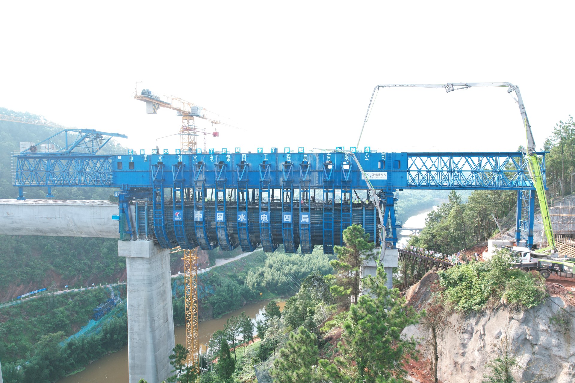 此次澆筑的清灘渡槽第二跨上跨內(nèi)六鐵路線,且受連續(xù)降雨影響,在施工過(guò)程中,參建各方克服施工場(chǎng)地空間小,技術(shù)難度大,危險(xiǎn)性較高等困難,通過(guò)嚴(yán)格質(zhì)量控制標(biāo)準(zhǔn)、提升施工組織水平,渡槽施工采取從第六跨澆筑至第一跨的倒序澆筑,此次澆筑的第二跨槽身,也是清灘渡槽倒數(shù)第二跨。