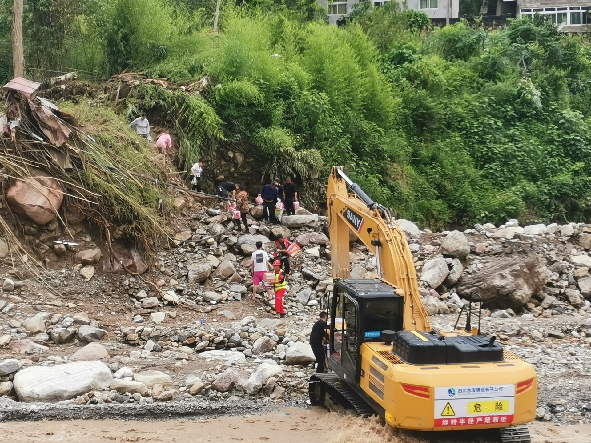 “大家快點(diǎn)兒,再快點(diǎn)兒!”黨員突擊隊(duì)隊(duì)長(zhǎng)王川負(fù)責(zé)現(xiàn)場(chǎng)指揮,他迅速將隊(duì)員們分工組隊(duì)勘察地形并組織機(jī)械物料投入搶險(xiǎn)工作。四個(gè)半小時(shí)后,搶險(xiǎn)隊(duì)伍在已沖毀的豆腐石橋處成功搭設(shè)1座人行便橋,加快了當(dāng)?shù)鼐仍?duì)伍緊急撤離村民的進(jìn)程。搶險(xiǎn)初期,由于運(yùn)輸?shù)壤щy導(dǎo)致油料等物資短缺。為了節(jié)約汽柴油,共產(chǎn)黨員王洪堅(jiān)守一線,帶領(lǐng)機(jī)械設(shè)備駕駛員們高溫作業(yè)也舍不得開(kāi)空調(diào)。共產(chǎn)黨員朱軍密切跟蹤各小組進(jìn)度,及時(shí)解決突發(fā)問(wèn)題,共產(chǎn)黨員余桃志、李大杰全力做好后勤保障、物資搬運(yùn),突破重重阻礙將工程機(jī)械用油源源不斷送至現(xiàn)場(chǎng)。共產(chǎn)黨員袁友軍時(shí)刻密切注視周?chē)h(huán)境,做好各項(xiàng)安全預(yù)警和保障措施……面對(duì)岌岌可危的碎石河道、堵塞橋孔,一線黨員干部沖鋒在前,大家日均搶險(xiǎn)16小時(shí),展現(xiàn)了四川水利國(guó)企的勇毅擔(dān)當(dāng)。