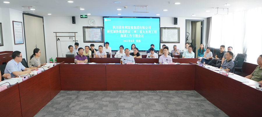 為全面落實(shí)全省水網(wǎng)建設(shè)規(guī)劃,搶抓重大歷史機(jī)遇,切實(shí)推動(dòng)省級(jí)水網(wǎng)先導(dǎo)區(qū)建設(shè),8月19日,集團(tuán)召開加快推進(jìn)跨市(州)重大水利工程前期工作專題會(huì),分析研判存在的問題,研究部署下步工作。集團(tuán)黨委書記、董事長王華主持會(huì)議并講話,四川省水利廳督察專員白紹斌到會(huì)指導(dǎo)。