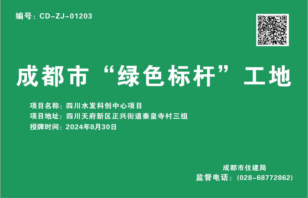 近日,四川水發(fā)科創(chuàng)中心項目正式取得由成都市住建局頒發(fā)的成都市“綠色標(biāo)桿”工地稱號,這是該項目獲批成都市2024年度重點項目之后榮獲的又一殊榮。