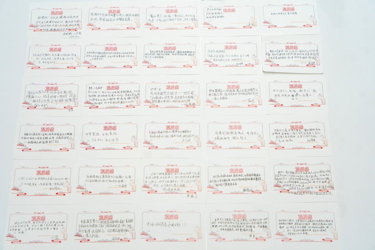 影片結(jié)束后,青年職工們的內(nèi)心久久不能平靜,影片中那些戰(zhàn)士們的鏗鏘話語仍然在每一個職工心間激蕩,大家通過觀后感卡片紛紛表達(dá)了感受,對那些為國家和民族獻(xiàn)出生命的英雄們表達(dá)了自己崇高的敬意。