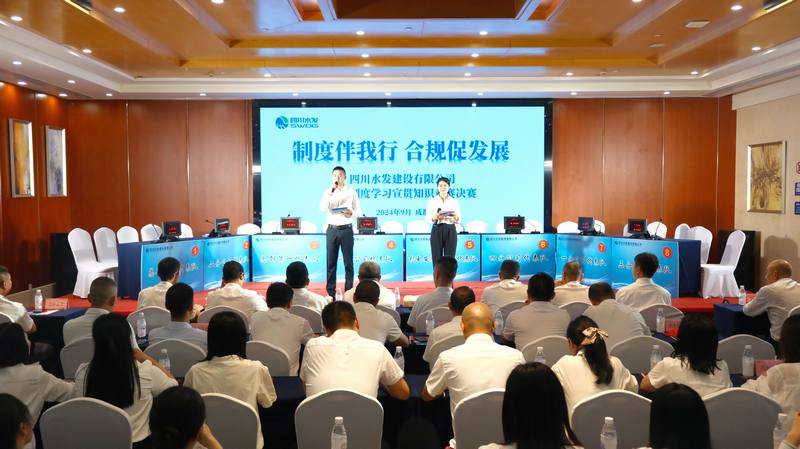 2024年是公司制度宣貫執(zhí)行年,現(xiàn)代企業(yè)的發(fā)展離不開(kāi)制度建設(shè),制度有效性的關(guān)鍵在于執(zhí)行。為賦能干部職工專業(yè)水平及合規(guī)意識(shí)的綜合增長(zhǎng),持續(xù)推動(dòng)公司現(xiàn)代企業(yè)治理體系建設(shè),水發(fā)集團(tuán)建設(shè)公司工會(huì)舉辦“制度伴我行合規(guī)促發(fā)展”內(nèi)控制度學(xué)習(xí)宣貫知識(shí)競(jìng)賽。9月29日,決賽在成都成功舉辦,以良好的精神風(fēng)貌為新中國(guó)75周年華誕獻(xiàn)上最誠(chéng)摯的祝福。7月啟動(dòng)知識(shí)競(jìng)賽活動(dòng)以來(lái),通過(guò)激烈緊張的角逐選拔,來(lái)自6個(gè)分(子)公司及公司總部的8支參賽隊(duì)伍共24名參賽選手站上了決賽舞臺(tái)。