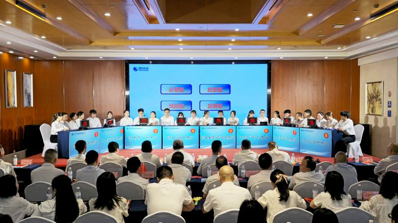 決賽現(xiàn)場(chǎng),全體干部職工在雄壯豪邁的歌聲中齊唱《歌唱祖國(guó)》,隨著公司董事、總經(jīng)理羅雪宣布開(kāi)賽,決賽正式開(kāi)啟激烈角逐。競(jìng)賽圍繞黨建宣傳、群團(tuán)建設(shè)、決策治理、戰(zhàn)略管控、安全生產(chǎn)、職能管理和業(yè)務(wù)運(yùn)行等方面,在“必答題--初露鋒芒”“搶答題--爭(zhēng)分奪秒”“風(fēng)險(xiǎn)題--共克險(xiǎn)關(guān)”等環(huán)節(jié),各組選手配合默契、反應(yīng)迅速,以進(jìn)取的精神、務(wù)實(shí)的作風(fēng)精準(zhǔn)判斷、踴躍答題;現(xiàn)場(chǎng)觀眾積極參加現(xiàn)場(chǎng)互動(dòng)競(jìng)答,充分展示了扎實(shí)的理論功底、豐富的知識(shí)儲(chǔ)備和良好的精神風(fēng)貌。