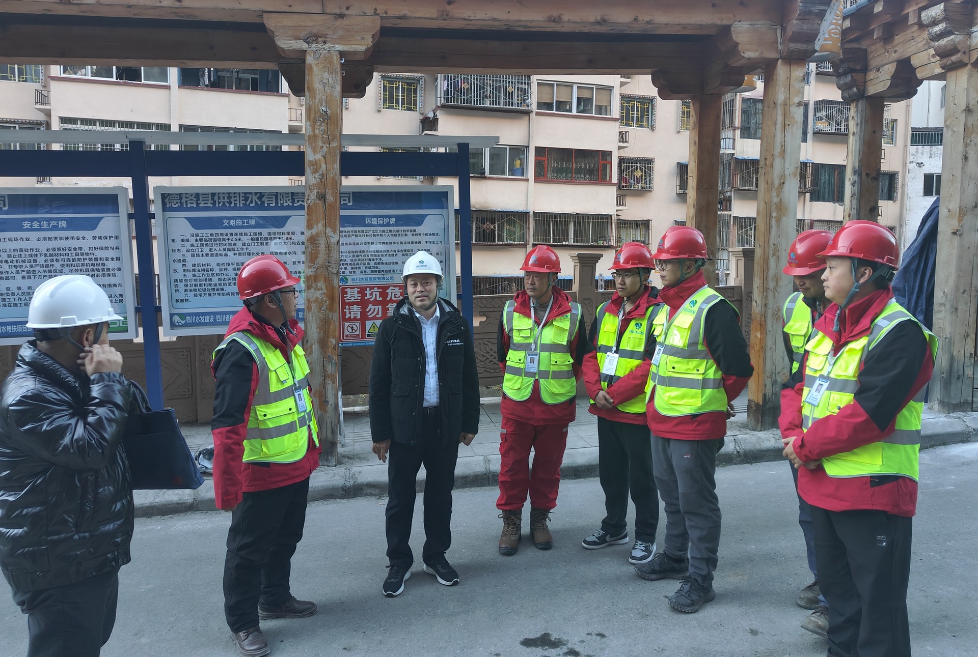 唐克飛深入施工現(xiàn)場,實(shí)地查看了工程建設(shè)情況,認(rèn)真聽取了項(xiàng)目部對項(xiàng)目管理、施工進(jìn)度、縣企配合度等情況的匯報(bào)。他指出,德格縣包裝飲用水幫扶項(xiàng)目是集團(tuán)高度關(guān)注的項(xiàng)目,項(xiàng)目團(tuán)隊(duì)傳承了水利鐵軍優(yōu)良傳統(tǒng),面對復(fù)雜多變的高原施工環(huán)境,全體職工迎難而上,以永不服輸?shù)捻g勁、善作善成的干勁不斷創(chuàng)造施工條件,如期完成了封頂節(jié)點(diǎn)目標(biāo);希望項(xiàng)目部持續(xù)深化黨建引領(lǐng),努力深耕區(qū)域,以高質(zhì)量項(xiàng)目建設(shè)支撐高質(zhì)量發(fā)展。牢記囑托擔(dān)使命,聚力攻堅(jiān)譜新篇,實(shí)現(xiàn)幫扶工程有力度,百姓幸福有溫度。最后對項(xiàng)目管理提出四點(diǎn)要求:
