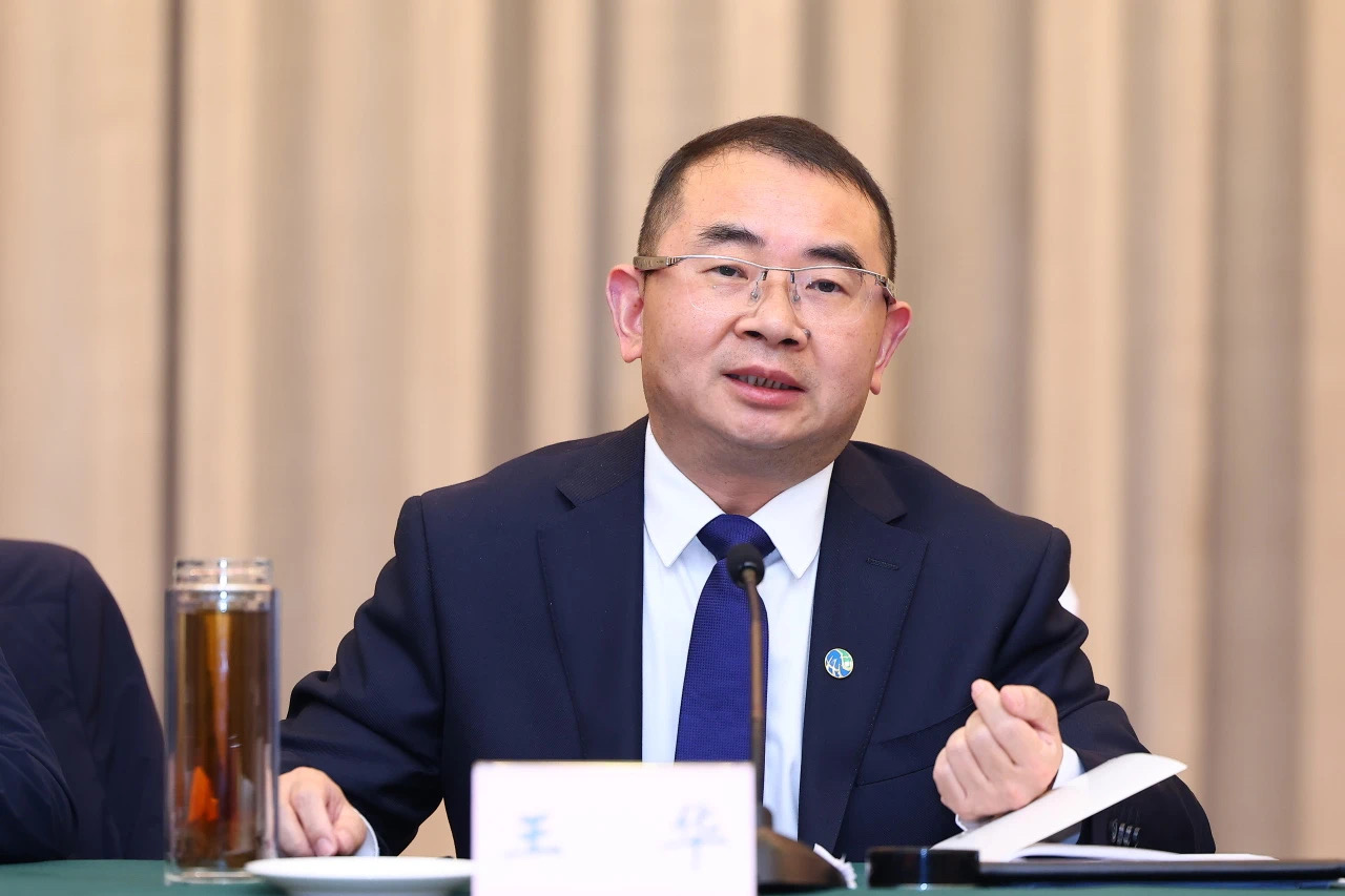 集團黨委書記、董事長王華向參會嘉賓介紹集團科技創(chuàng)新工作-1